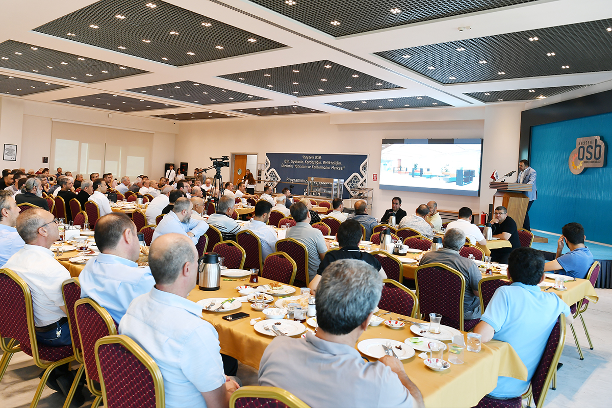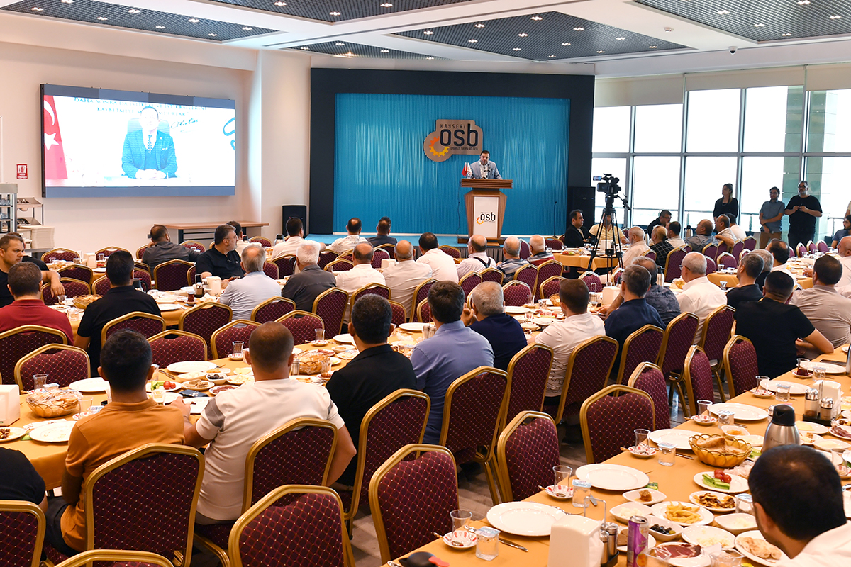 Kayseri Organize Sanayi Bölgesi’nde düzenlenen kahvaltılı istişare toplantısına; Kayseri OSB Yönetim Kurulu Başkanı Mehmet Yalçın, Yönetim Kurulu Başkanvekili Murat Yibur, Yönetim Kurulu Üyesi Zafer Baktır ve Nihat Bozkurt, Denetim Kurulu Üyesi Mustafa Gengeç, Bölge Müdürü Abdulmenap Esko, Danışman Kamil Akçadırcı, Yeminli Mali Müşavir Ahmet Solak ve Hukuk Müşaviri Ali Fidan ile sanayiciler katıldı.